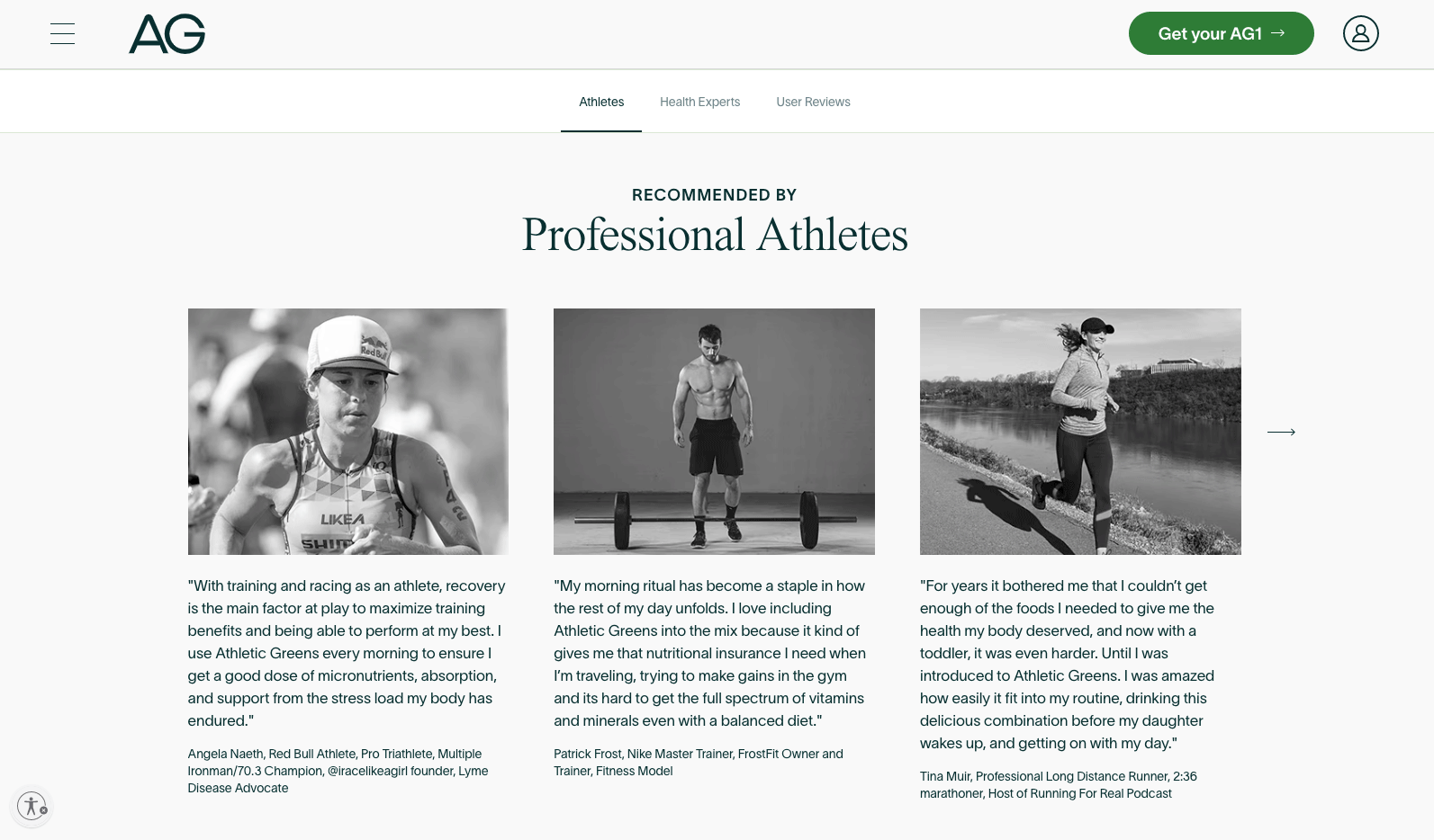 For Athletic Greens, they do an exceptional job in providing social proof in more than one area — touching on reviews from professional athletes, to health experts, as well as their consumers — all within a dedicated page on their site.
