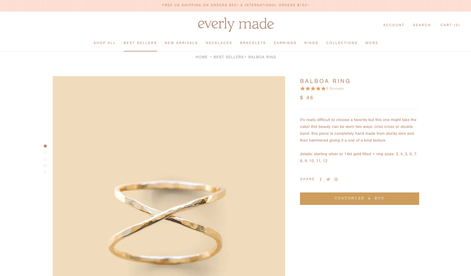 For Everly Made, they make their checkout process extremely simple with a few quick prompts. Given that many of their jewelry offerings are customly curated, they ensure they take their consumer through a seamless journey to customize their selected product, ending with a final checkout destination with ease.