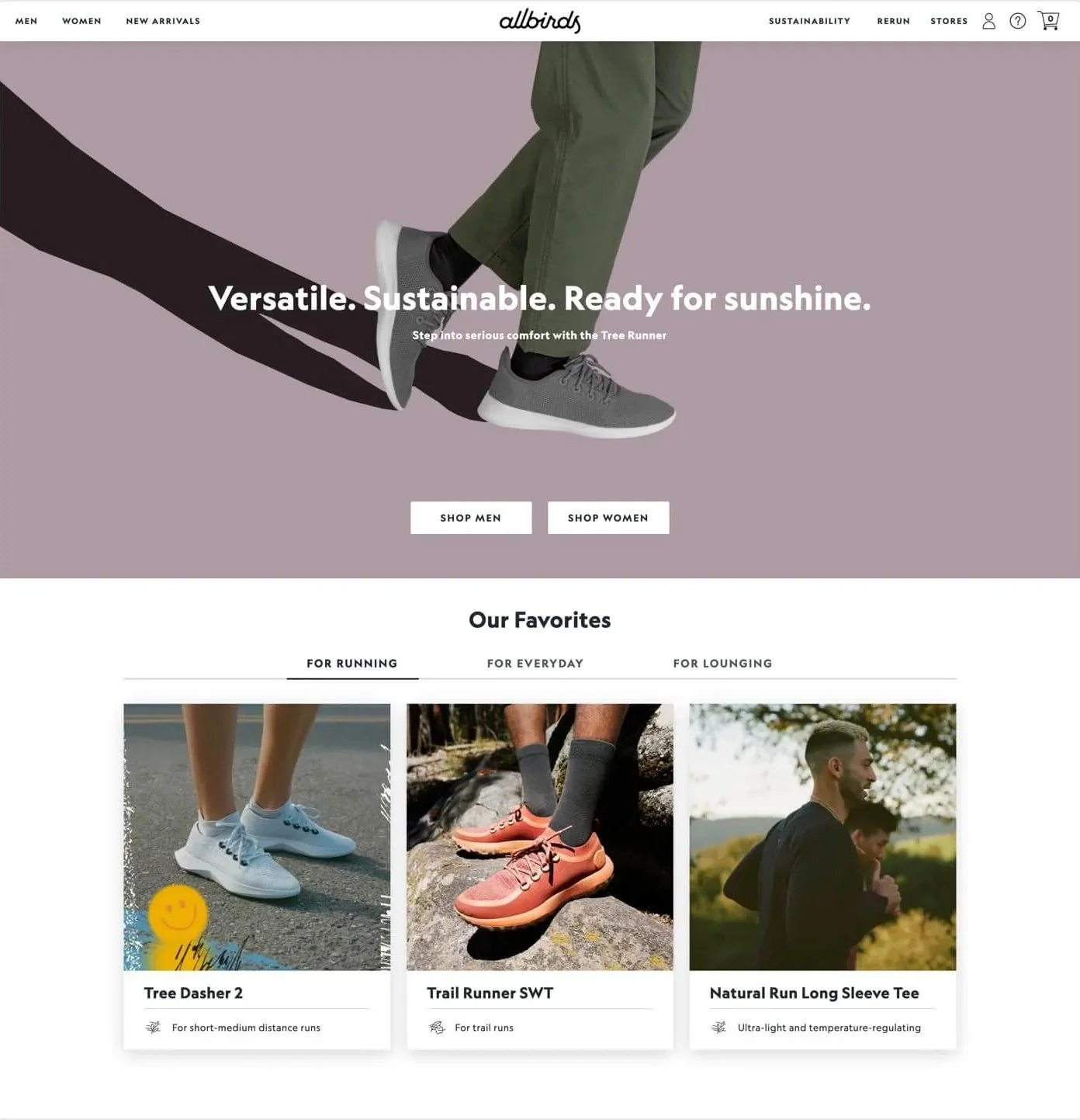 Using Allbirds as the perfect example, they pack a punch directly when a user lands on their website with an engaging product photo, catchy headline, and 2 direct call to actions for immediate engagement / a smooth userflow.