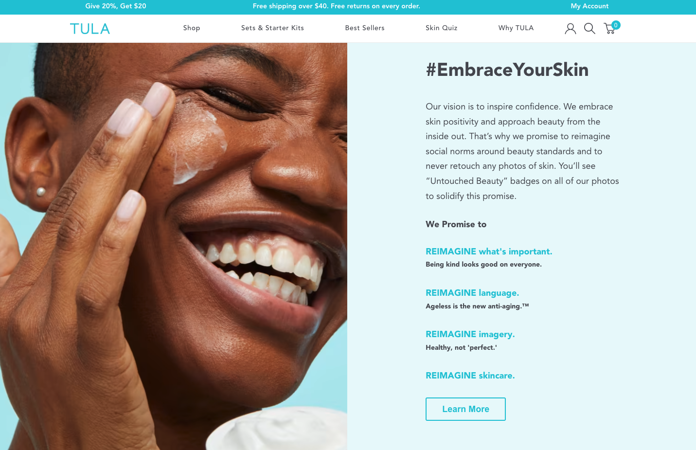 Using Tula as an example, they have an engaging “Why Tula” page dedicated to telling their unique story through a personalized message — hitting home with their core consumers to build brand love and trust.